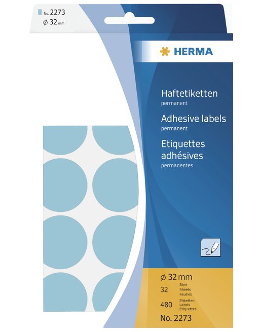 Etiket Herma 2253 rond 19mm blauw 1280stuks