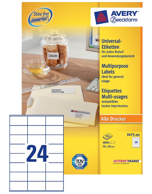 Etiket Avery Zweckform 3427 105x74mm wit 1600stuks