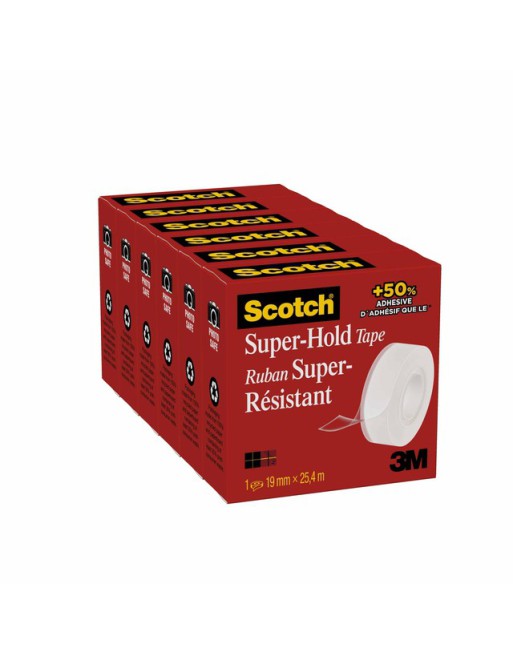 * 50% meer kleefkracht (vergeleken met Scotch® Crystal Tape) voor zeer stevig afplakken. * Ideaal voor het stevig afplakken van belangrijke documenten en pakketten. * Vrijwel kristalheldere tape met een glanzende afwerking. * Permanente lijm voor langdurige kleefkracht. * Vertrouw op de krachtige hechting van Scotch® Super-Hold Tape voor het dichtmaken van kleine pakjes en belangrijke enveloppen die stevig dicht moeten blijven.