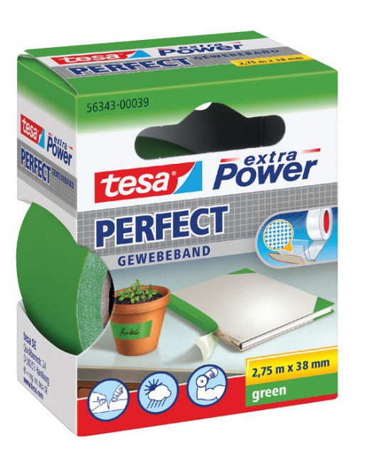 * Tesa textielplakband. * Het ideale extra sterke klussentape. * Ideaal voor klussen, repareren, bundelen, versterken, markeren en nog veel meer. * Voor permanente, hoog belastbare en langdurige resultaten. * Handinscheurbaar en trekbestendig. * Weersbestendig voor zowel binnen- als buiten toepassingen. * Zeer hoge kleefkracht. * Rollengte 2,75meter. * Per stuk leverbaar.* Besteladvies doos à 6 rol. 1 stuk