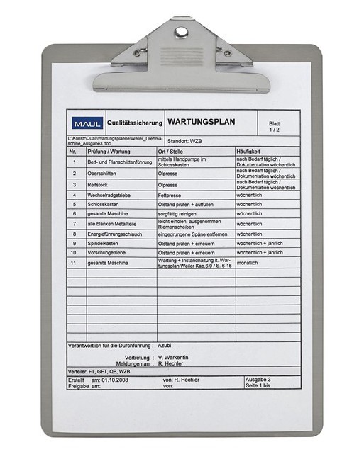 * Bijzonder hoogwaardig RVS-klembord en klem van RVS. * Compleet RVS, roestvrij, corrossiebestendig. * Professioneel bord, ook geschikt voor gebruik buitenshuis. * Zeer sterk en representatief bord, eenvoudig te reinigen. * Grote RVS-klem met aanslag voor het papier. * Voorzien van afgeronde randen. * Voor design-georiënteerde gebruikers: Coole metallic-look, elegant. * Handig op te hangen. * Klemdikte ca. 2 cm. * Borddikte ca. 0,1 cm, zeer stabiel in gebruik.