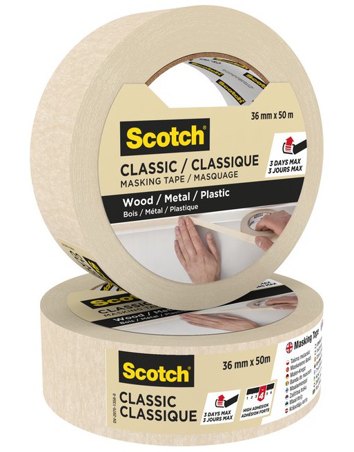 * Klassieke afplaktape voor algemeen afplak- en afdekwerk. * Zonder lijmresten verwijderbaar tot 3 dagen na het aanbrengen. * Middelsterke tot sterke hechting. * Gemakkelijk met de hand af te scheuren. * Voor binnengebruik. * AFPLAKTIPS VOOR TAPE: Voor de mooiste verfresultaten moet de ondergrond schoon, droog en stofvrij zijn, zodat de tape goed plakt. Breng vervolgens de tape aan terwijl u deze stevig op de ondergrond drukt. Laat de tape daarna ca. 30 tot 60 minuten rusten voordat u gaat schilderen. * VERWIJDERTIPS VOOR TAPE: Wacht tot de verf stofdroog is voordat u de tape verwijdert. Trek de tape langzaam achterwaarts los, daarna verwijderen onder een hoek van 45 graden.