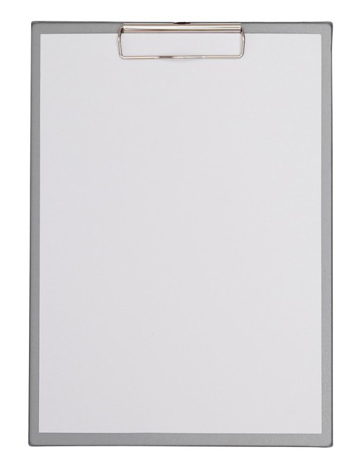 * Voor wie op de prijs let, een klembord van stevig karton met folie-coating. * Platte beugelklem van 100mm breed met grijpring. * Op te hangen met inschuifbaar ophanghaakje. * Klemwijdte ca. 0,8 cm. * Plaatdikte 0.26 cm.