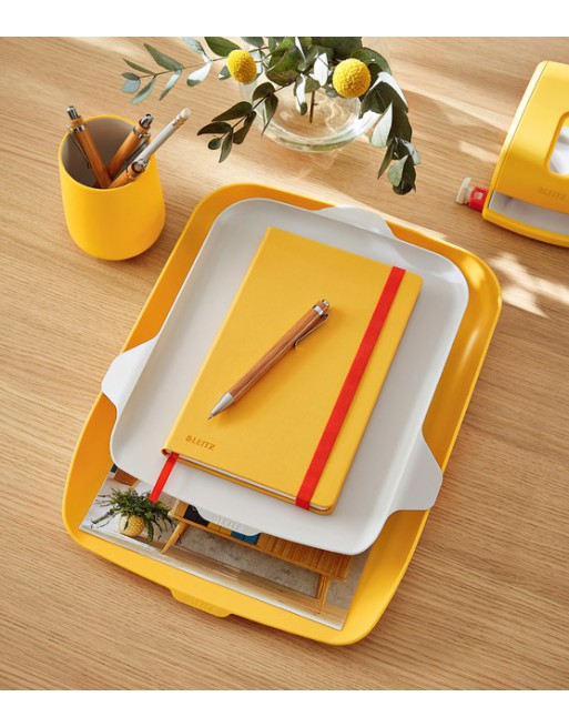 * Voel je thuis, waar je werkdag je ook brengt met de Cosy Range van Leitz. * Met het minimale en en veelzijdige design en de uitnodigende matte kleuren, kan je stijl en kleur toevoegen aan jouw werkruimte. * De Cosy brievenbak met desk organiser is geschikt voor papier van maximaal A4 formaat en houdt belangrijke documenten overzichtelijk en binnen handbereik. * Combineert een brievenbak met een extra opbergmogelijkheid dat eenvoudig op de bovenkant van de brievenbak rust, zodat je altijd de dagelijkse benodigdheden bij de hand hebt. * Op de desk organiser kan je jouw tablet, mobiele telefoon of andere accessoires in op te bergen. * Geschikt voor het bewaren van papierwerk, tijdschriften en mappen tot A4- en C4-formaten in zowel folio- als letterformaat. * Brede opening aan de voorkant zorgt ervoor dat de inhoud gemakkelijk toegankelijk is, zelfs als ze gestapeld zijn. * Plasticvrije verpakking. * De Cosy Range van Leitz combineert comfort in huisstijl met eersteklas kwaliteit om een positieve en productieve werkomgeving te creëren.
