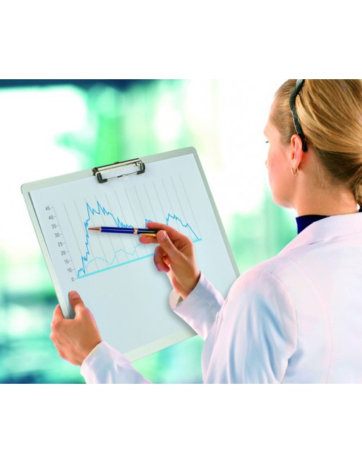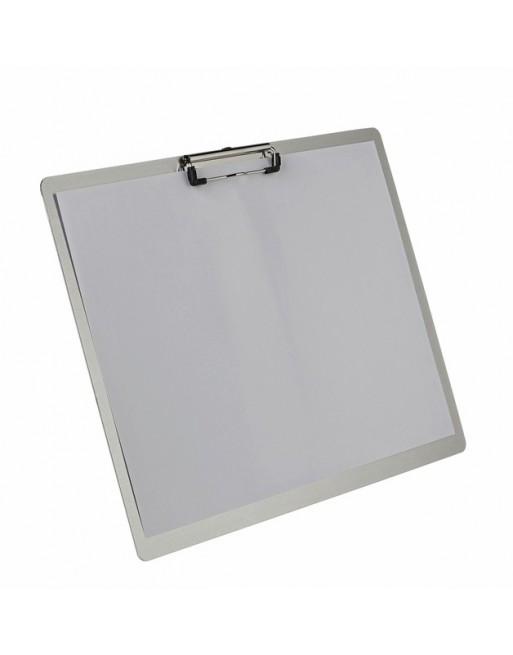 * Klembord A3 dwars van geanodiseerd aluminium met afgeronde hoeken. * Vlakke beugelklem met grip. * Op te hangen, d.m.v. ophangoog. * Capaciteit 8 mm. * Plaatdikte 0,12 cm. * Recyclebaar
