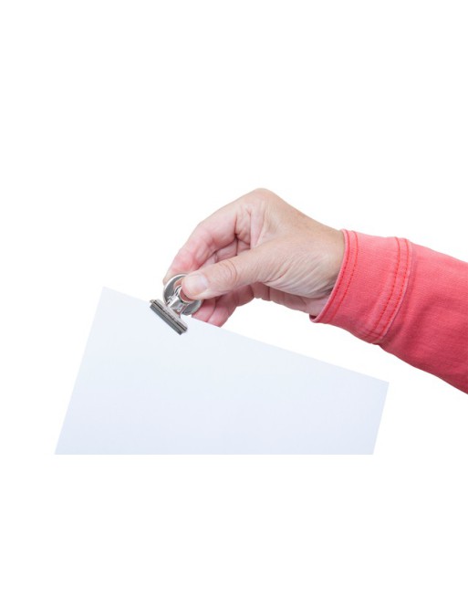 * Papierklem met magneet aan de onderzijde. * Ideaal om informatie te bevestigen aan whiteboarden of metalen kasten, stellingen en machines. * Dankzij magneetwerking hoeven geen gaten geboord te worden. * Klem en veer van metaal. * Hechtkracht van 3,5kg. 1 blister x 2 stuk
