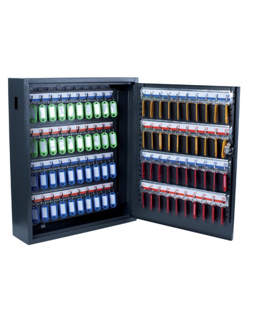 * Bewaar uw sleutels veilig in een sleutelkast. * Key Return opening, waardoor men zijn/haar sleutel weer eenvoudig kan retourneren ook als de sleutelkast gesloten is. * Metalen verstelbare sleutelhaken. * Compleet met sleutelhangers, genummerde haken, bevestigingsmateriaal en 2 sleutels om de sleutelkast te sluiten/openen. * Kleur: donkergrijs mat finish. * Afmetingen (hxbxd) 450x380x110mm 1 stuk