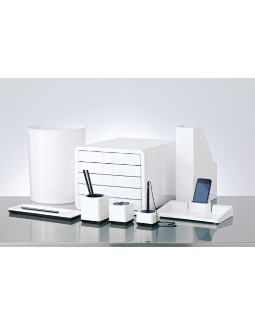 * De iBox-serie is een innovatieve bureau-accessoireserie die zich kenmerkt door een elegant design. * Stijlvol met hoogglanzende afwerking. * Deze serie combineert perfect de vraag naar een mooi design met functioneel gebruik. * Strakke lijnen voor het moderne kantoor. * De iBox Innovatieve ladenkast voor op het bureau. * Tijdloos, eigenzinnig en elegant vormgegeven. * De ladenkast bevat 5 laden tot formaat C4. * De ladehoogte is 40mm. * Inclusief beschrijfbare labels. * Vervaardigd van hoogwaardig kunststof met hooglanzende afwerking. * Afmeting: 295x368x355mm. 1 stuk