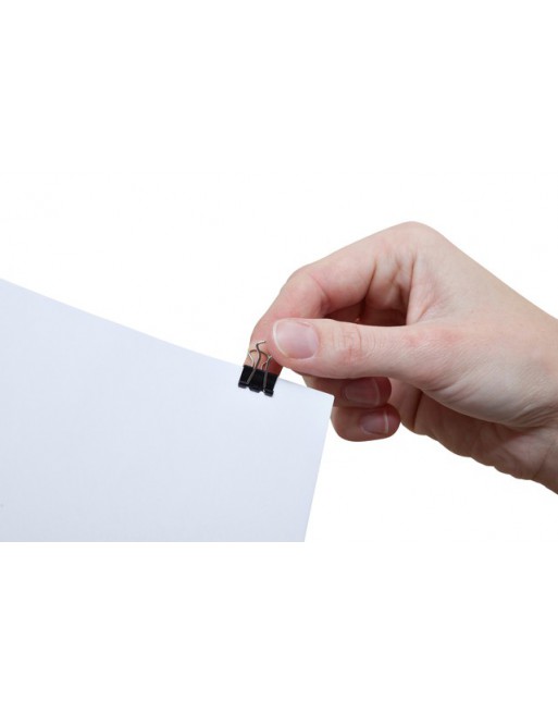 * Compacte papierklem, maar met een grote capaciteit. * Voor het bij elkaar houdenvan losse documenten. * Voor het markeren en archiveren van complete dossiers in ringbanden of ordners of om documenten op een prikbord te hangen. * Open de papierklem door de metalen beugels naar achteren te klappen en samente knijpen, sluiten van de klem door de beugels weer los te laten en eventueelnaar voren klappen. * De metalen beugels kunnen verwijderd worden, zo blijft alleen de klem op het document achter en nemen de beugels géén extra ruimte in. 1 blister x 12 stuk