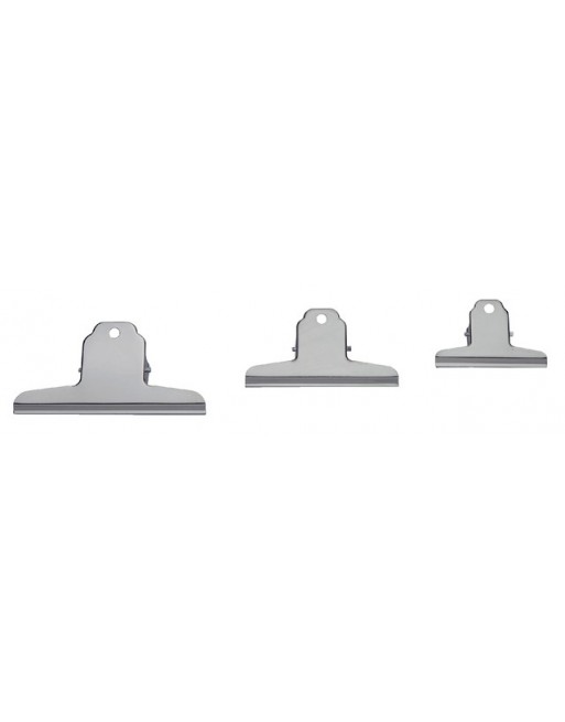 * Papierklem van hoogwaardig staal. * Met krachtige spiraalveer. * Grote klemwijdte. * Overal te gebruiken: voor opslag, onthouden, binden, persen en lijmen. * Ook op te hangen.