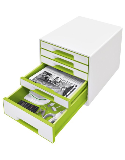 * Ladebox met 5 laden voor het bewaren van A4 formaten. * Eenvoudig in te klappen voor ruimtebesparing wanneer je hem niet nodig hebt. * Metalen duimhouder voor gebruiksvriendelijke opening. * Voor het scheiden van projectdocumenten, correspondentie, schoolvakken of privézaken die je uit het zicht van je collega's wilt houden. * De glanzende PP-afwerking geeft de box een luxe uitstraling en zorgt voor langdurig gebruik en eenvoudig stof verwijderen. * Metalen labelhouder voor eenvoudige indexering met witte labels. * Gemaakt van sterk, premium karton. * Onderdeel van de kleurrijke WOW range.