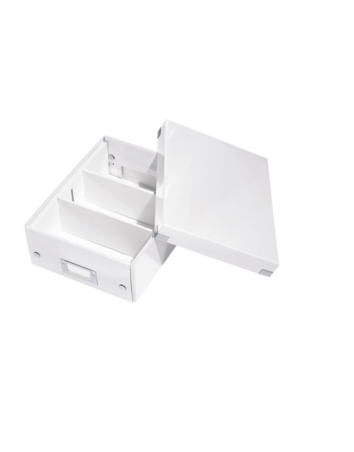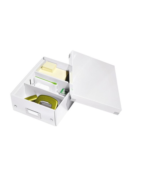 * Opbergdoos met 2-3 flexibele compartimenten. * Eenvoudig in te klappen voor ruimtebesparing wanneer je hem niet nodig hebt. * Labelhouder voor indexering. * Gelamineerd oppervlak voor een betere en langere bescherming. * Eigentijds ontwerp, perfect voor zowel thuis als op kantoor. * Opvallende en stijlvolle doos voor het organiseren van opladers, kabels, schrijfwaren en andere spullen. * Voor de verdere scheiding van de inhoud gebruik je het meegeleverde vakkensysteem voor de binnenkant. * Je kunt de doos verdelen in twee of drie delen, zodat je geen last meer hebt van een kabelspaghetti of afbeeldingen die door elkaar heen liggen. * Snel en eenvoudig te monteren door drukknoppen en eenvoudig in te klappen voor ruimtebesparing wanneer je hem niet nodig hebt. * De glanzende PP-afwerking geeft de box een luxe uitstraling en zorgt voor langdurig gebruik en eenvoudig stof verwijderen. * Gemaakt van sterk, premium karton. * Gepatenteerde constructie om te voorkomen dat de doos uit zichzelf opent wanneer deze wordt gedragen met zwaardere inhoud. * Metalen labelhouder voor eenvoudige indexering met witte labels. * Onderdeel van de kleurrijke WOW range.
