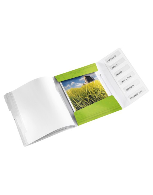 * Hoge kwaliteit, PP sorteermap in levendige WOW-kleuren met dubbel kleureffect en een stijlvol geometrisch patroon. * Ideaal voor presentaties of voor het organiseren van documenten op kantoor, thuis of onderweg. * Met 6 tabbladen wordt sorteren gemakkelijk. * 3 flappen aan de binnenkant van de achterzijde voor het bewaren van extra documenten. * De indexhoes maakt het mogelijk om snel inhoud terug te vinden. * Praktische elastische bandsluiting voor het veilig vervoer van documenten. * Kan worden gecombineerd met standaard zichtmappen. * Capaciteit: 200 A4 vel (80 gr). * Zuurvrij en Copysafe. * Onderdeel van de kleurrijke WOW range.