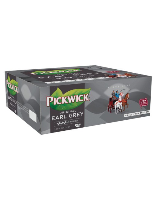 * Een lekkere kop Pickwick thee voor uw werknemers of gasten? * Als zakelijke klant kunt u bij ons gemakkelijk online thee bestellen. * Daarnaast bieden we ook zes Fairtrade thee varianten. * Thee in diverse smaken. * In zakjes met óf zonder envelop. * 100 zakjes in één doos. * Utz gecertificeerd. * Deze karakteristieke melange bestaat uit een keur van zachte, licht kruidige theeën en volle, frisse theesoorten. * Het aroma van de Bergamot-citroen geeft de melange haar verfrissende geur en smaak. * Thee voor ieder moment van de dag. 1 pak x 100 stuk