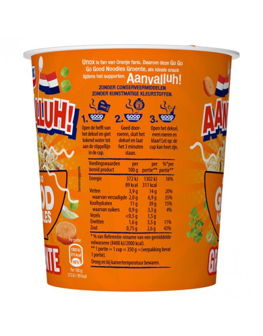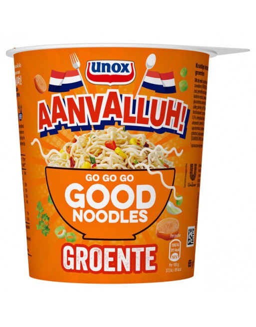 * Soms kan het leven druk zijn. * Werk, sport, vrienden, familie: we rennen van hot naar her. Heb je op dat soort dagen een rammelende maag? * Maak het jezelf dan eenvoudig met een lekker vullende snack. * Probeer Unox good noodles, klaar in een handomdraai. *Kruidige instant noedels met de smaak van groenten. Stuk à 1 cup