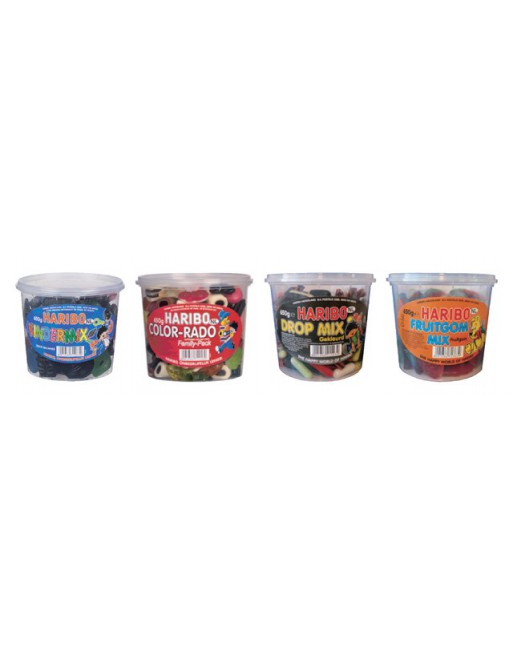* Haribo heeft een zeer veelzijdig assortiment. * Het assortiment voorziet in alle behoeften van de consument; of je nu houdt van drop, fruitgom, kauwbonbons, spekjes, schuimblokken, trekdrop of zoet, zuur of fruitig, Haribo heeft voor ieder wat wils. * De artikelen zijn stuk voor stuk van uitstekende kwaliteit, geproduceerd onder strenge kwaliteitscontroles en met zoveel mogelijk natuurlijke grondstoffen. * De best verkochte dropartikelen uit de out-of-home markt in één silo. 1 doos x 650 gram