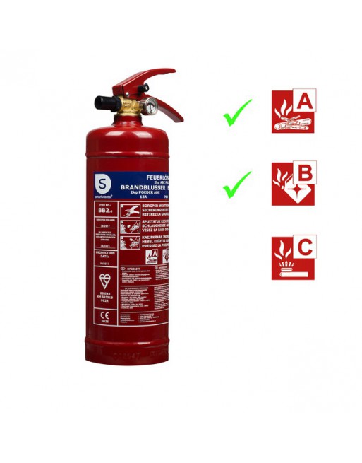 * Poederblusser, inzetbaar waar de brand snel en doeltreffend moet worden geblust en de gevolgschade van weinig belang is. * Voor in de auto, caravan, camper, schuur, werkplaats of boot. * Universeel inzetbaar. * Direct gebruiksklaar. * Eenvoudig te bedienen. * Vorstbestendig tot -30?C. * Voor het blussen van vaste stoffen, vloeistoffen, gassen en brand in voertuigen. * Deze blusser werkt zonder slang. * Inclusief ophangbeugel. * Deze blusser heeft het Europesche EN-3 keurmerk. * Brandblusser hebben een houdbaarheidsdatum. * Hierdoor kan een brandblusser na plaatsing 10 jaar gebruikt worden, na deze periode moet je de brandblusser vervangen. 1 stuk