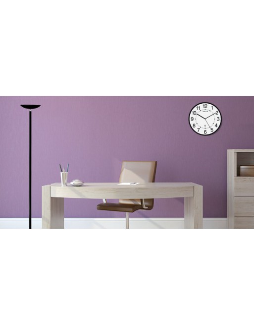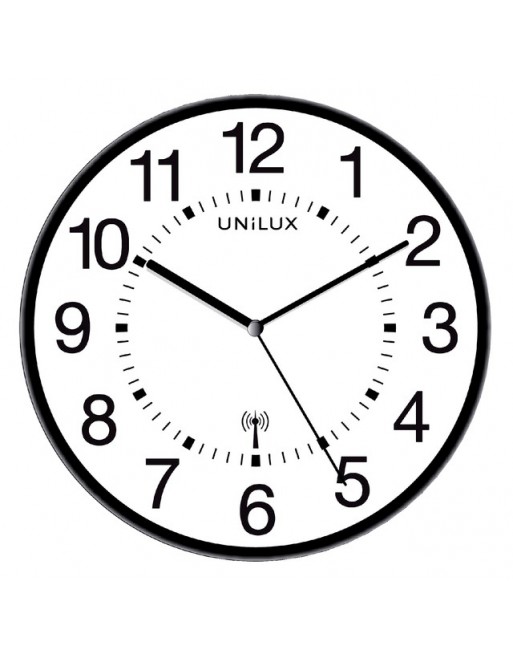 * Klok met Radio-controlled functie. * Hij staat dus altijd op de juiste tijd. * Inclusief secondewijzer. * Gemaakt van glas en kunststof. * Witte achtergrond met zwarte cijfers. * Functioneert met één AA batterij (meegeleverd). * Diameter 30cm. 1 stuk