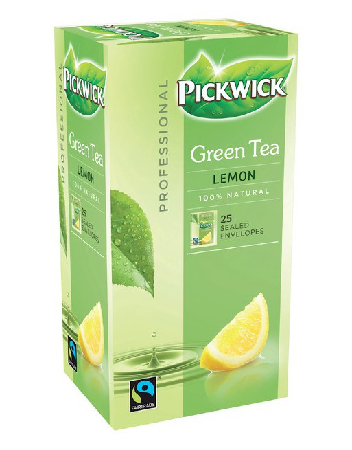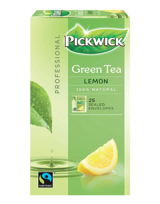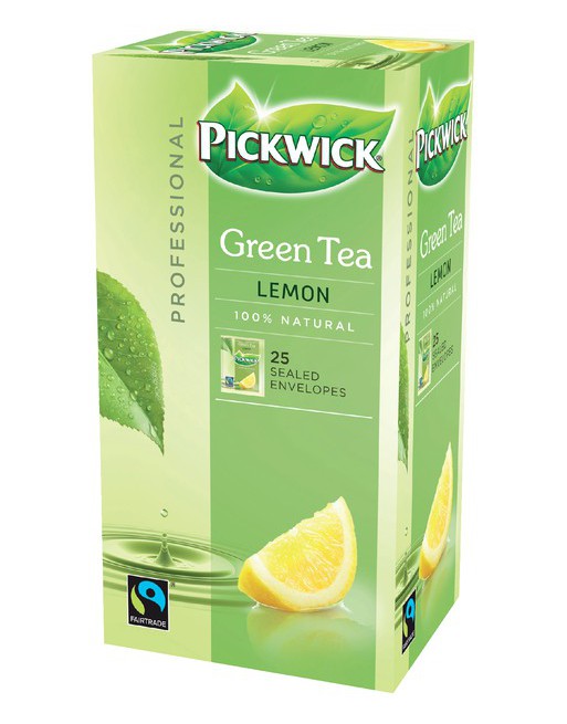 * Een lekkere kop Pickwick thee voor uw werknemers of gasten? * Als zakelijke klant kunt u bij ons gemakkelijk online thee bestellen. * Daarnaast bieden we ook zes Fairtrade thee varianten. * Thee in diverse smaken. * De zakjes zijn individueel verpakt. * Deze smaken thee wordt geleverd per 3 dozen à 25 zakjes. * Utz gecertificeerd. * Groene thee vindt zijn oorsprong in China en Japan, waar het bekend staat om de verkwikkende werking. * De theeblaadjes worden direct na het plukken verhit of gestoomd. * Omdat er geen fermentatie plaatsvindt, zoals bij traditionele thee, behoudt het blad zijn mooie groene kleur. * Pickwick Groene thee Original heeft een karakteristieke lichte kleur. * Een vleugje citroen zorgt voor een zeer verfrissende smaak. 3 pak x 25 stuk