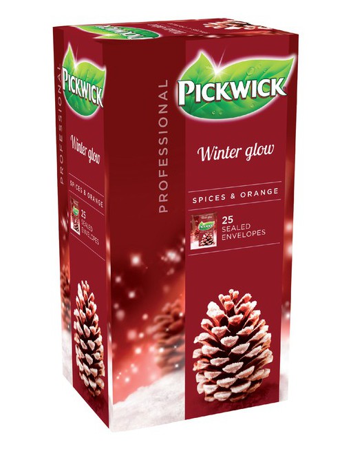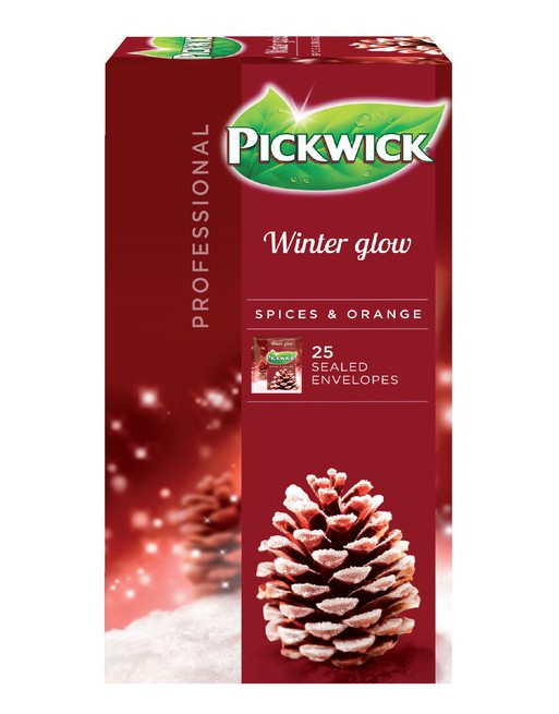 * Een lekkere kop Pickwick thee voor uw werknemers of gasten? * Als zakelijke klant kunt u bij ons gemakkelijk online thee bestellen. * Daarnaast bieden we ook zes Fairtrade thee varianten. * Thee in diverse smaken. * De zakjes zijn individueel verpakt. * Deze smaken thee wordt geleverd per 3 dozen à 25 zakjes. * Utz gecertificeerd. * Buiten is het bitterkoud. * De snijdende wind jaagt mensen diep hun jassen in. * Gelukkig is er Wintergloed, die combineert de smaak van thee met de rijke smaak van specerijen en vruchten. 3 pak x 25 stuk