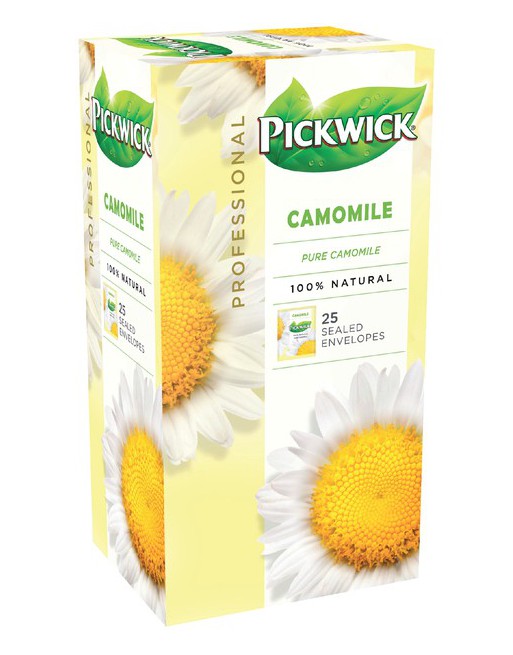 * Een lekkere kop Pickwick thee voor uw werknemers of gasten? * Als zakelijke klant kunt u bij ons gemakkelijk online thee bestellen. * Daarnaast bieden we ook zes Fairtrade thee varianten. * Thee in diverse smaken. * De zakjes zijn individueel verpakt. * Deze smaken thee wordt geleverd per 3 dozen à 25 zakjes. * Utz gecertificeerd. * 100% puur kamille. * 100% natuurlijk, bevat geen calorieën en is cafeïne vrij. 3 pak x 25 stuk