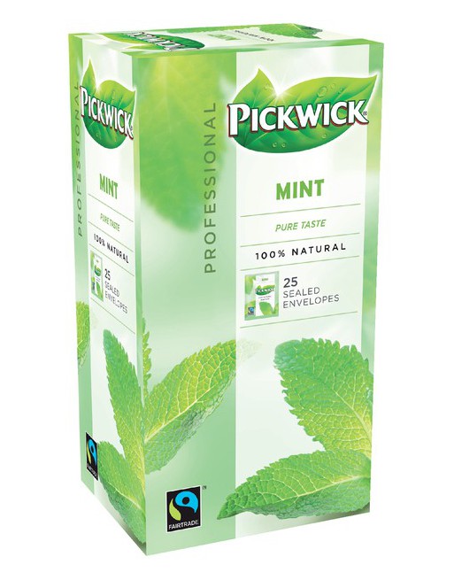 * Een lekkere kop Pickwick thee voor uw werknemers of gasten? * Als zakelijke klant kunt u bij ons gemakkelijk online thee bestellen. * Daarnaast bieden we ook zes Fairtrade thee varianten. * Thee in diverse smaken. * De zakjes zijn individueel verpakt. * Deze smaken thee wordt geleverd per 3 dozen à 25 zakjes. * Utz gecertificeerd. * Frisse thee met een karakteristieke lichte kleur. * Door de toevoeging van munt krijgt de thee een extra verfrissende smaak. * Deze thee is het perfecte alternatief voor een verse muntthee. * 100% natuurlijk en bevat geen calorieën! 3 pak x 25 stuk