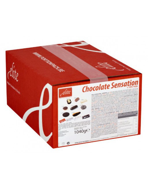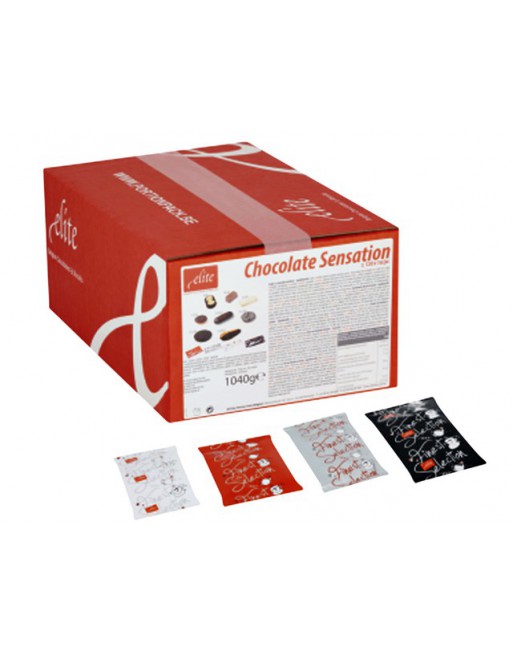 * Elite Chocolate Sensation is een gechocolateerd koekassortiment en verkrijgbaar in een doos à 120 stuks. * Geen zorgen over de verheid, want alle koekjes zijn per stuk verpakt in een eigentijdse vrolijke verpakking. * Geniet van acht heerlijke koekjes en chocolaatjes: Lady Kathy, Praliné, Galleta Butterfly Blanco, Orange Cake, Choc choc lait Bresilien, Biarritz/ChocoloRondo, Gechocolateerde stroopwafeln en Dipspritz. 1 doos x 120 stuk