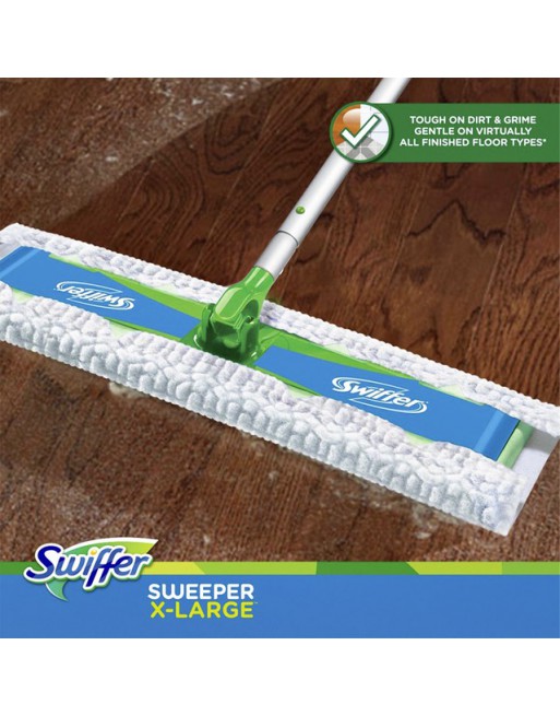 * Met de Swiffer Sweeper wordt afstoffen kinderspel! * Hij neemt al het stof op en houdt het vast, zodat het niet meteen weer neerdwarrelt op net gereinigde oppervlakken. * Door de speciaal ontworpen draaikop kan de veger vrijwel geheel vlak liggen, waardoor je veel eenvoudiger kunt schoonmaken op moeilijk bereikbare plekken. * De draaikop kan volledig rond zijn as draaien, zodat je alles rondom kunt schoonmaken. * De steel is ergonomisch ontworpen voor een comfortabele grip. * Vangt haar en stof waar het zich ook verbergt. * Reinigt in 1/2 van de tijd vs een stofzuiger op moelijk te bereiken plekken. * Opvolger van de bekende Swiffer maar dan in een Maxi XXL uitvoering met een voetstuk van 42cm breed. * Inhoud, de houder en 8 droge schoonmaakdoekjes.