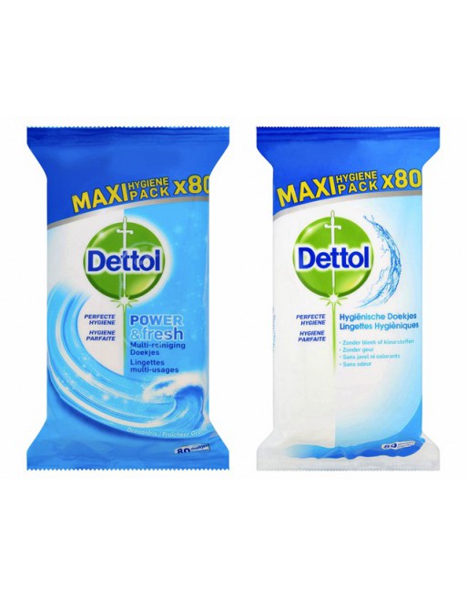 * Dettol wordt al meer dan 80 jaar lang vertrouwd door medische professionals om families te beschermen tegen bacteriën, ziekten en slechte hygiëne. * Dettol Hygienische Doekjes zijn handige schoonmaakdoekjes die vet en vuil eenvoudig verwijderen. * Te gebruiken op ieder oppervlak. * De krachtige doekjes verwijderen keukenvet, zeepresten en badkamervuil met het grootste gemak. * De schoonmaakdoekjes zijn bleekvrij en laten geen vlekken of geurtjes achter. * De verpakking bevat 80 doekjes voor een schoon en 100% hygiënisch resultaat. * Veiligheidsinformatie: buiten het bereik van kinderen houden. * In geval van contact met de ogen, onmiddellijk spoelen met veel water en een arts raadplegen. * Vermijd contact met een geïrriteerde huid en open wonden. * Deze doekjes zijn bedoeld voor huishoudelijk gebruik op harde en wasbare oppervlakken. * Niet geschikt voor persoonlijk gebruik. * Niet in het toilet gooien.