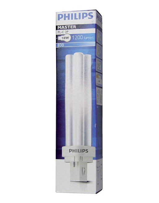 * De Philips PL-C spaarlamp. * TL techniek met een levensduur van 10.000 uur. * Warm Wit licht. * 2-Pin word ook wel een PL-C spaarlamp met steekfitting genoemd. * Energiebesparende compacte fluorescentielamp. * Lampvoet G24d-2 met 2 pinnen. * Niet dimbaar. * Standaard kleur 830. * Energielabel B. 1 stuk