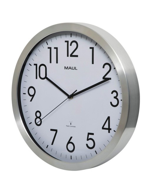 * extra grote Chice klok. * Voorzien van een Duits quartz uurwerk, radio gestuurd. * Doorsnede 40cm. * Eigentijdse en trendy uitstraling voor in kantoor of bij u thuis. * Brede rand van geborsteld aluminium. * Witte wijzerplaat, in zwart bedrukt met Arabische cijfers, cijferhoogte 35 mm, inclusief uur- en minuut aanduiding. * De klok is goed af te lezen, ook vanaf een grotere afstand. * Werkt op één 1,5V AA batterij, deze is bijgesloten. * Automatische tijd-synchronisatie met het signaal van de tijdseinzender DCF77 in Frankfurt. * Automatische instelling van zomer- en wintertijd.