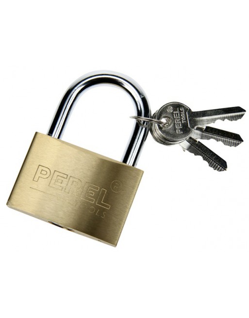 * Hangslot met kast van massief messing. * Verchroomde stalen beugel. * Roestvrij binnenwerk. * Geleverd met 3 sleutels. * Gewicht 240gr. * De beugel is 43mm hoog en heeft een Ø9mm.