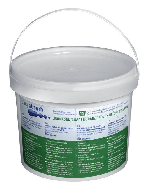 * Absorptiekorrels nemen gemakkelijk drank, oliën, vetten, benzine, bloed, braaksel en andere petrochemischevloeistoffenop door het hoge absorberende vermogen van de korrels. * De korrels blijven in een vaste vorm waardoor ze direct een anti slip laag vormen over de gemorste vlekken. De korrels zijn geschikt voor zowel grote als kleine vlekken. * Hiermee maakt u uwvloer schoonen voor een lange tijd mooi. * Emmers van 1,5 liter.