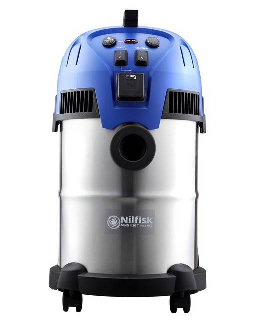 De Nilfisk Multi II heeft tevens een "Push To Clean" functie om het filter te reinigen. * Via deze semi-automatische functie is het mogelijk het filter schoon te blazen van binnen naar buiten.De combinatie van filter cleaning indicator en "Push to Clean" maken deze machine uniek. *De Multi II 30 T VSCbeschikt over een instelbaar variabel toerental. * Handig wanneer de zuigkracht van de efficiënte 1400W motor tijdelijk gereduceerd moet worden. * Deze 30 liter versie is een uitstekende keuze als u droog of nat vuil moet opzuigen. * De stof-waterzuiger is enorm wendbaar en door zijn compacte design eenvoudig op te bergen. * Zuigkracht van 1400W. * Kabellengte 5m. * Gewicht 10,5kg. * Reservoir inhoud 30liter. * Geluidsniveau 87dB. * Afmetingen 43x38x69cm.