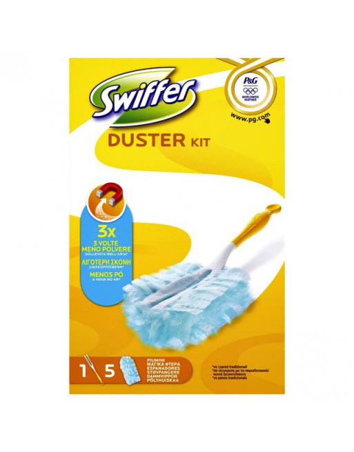* Stof is helaas iets wat altijd terug zal komen. * Daarom wil u natuurlijk zo min mogelijk tijd en moeite kwijt zijn om te stoffen en daarnaast ook goede resultaten behalen. *Met de Swiffer Duster kunt u 3 keer meer stof opvangen en vasthouden dan met een stofdoek. * De Swiffer Duster neemt stof op en houdt het vast met duizenden flexibele, donzige vezels. * De vezels hebben een lichte coating van Dust-Lock Adhesive en ze veranderen van vorm om alle hoekjes en gaatjes te bereiken van bijvoorbeeld radiatoren, jaloezieën en boekenplanken. *Omdat bij het gebruik van de Swiffer Dusters 3keer minder stof in de lucht vrijkomt dan met een katoenen doek, blijft uw huis langer stofvrij. * Bovendien zorgt het ergonomisch gevormde handvat voor een goede, comfortabele grip. * Deze starterkit bestaat uit 1 Swiffer Duster en 5 afstoffers.