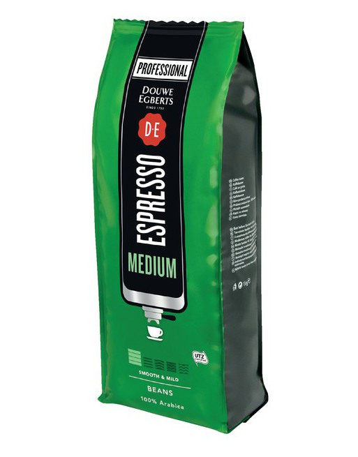 * Douwe Egberts Espresso is een volle, rijke koffie gemaakt van de beste Arabica bonen. * Het langdurige brandproces zorgt voor een diepdonkere brandkleur en een rijk aroma. * Dat maakt deze koffie dan ook zeer geschikt voor het maken van een krachtige espresso, vol van smaak en een uitstekende basis voor koffiecreaties met melk, zoals cappuccino en caffé latte. * Volgebrande en aromatische espressomaling met een rond en uitgebalanceerd karakter. * Deze blend bevat 100% hoogwaardige Arabica-bonen. 1 pak x 1000 gram