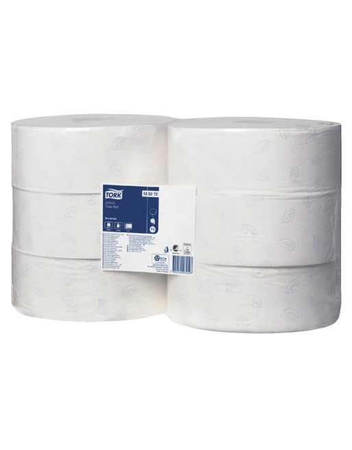 * Het Tork Jumbo-systeem is efficiënt en kostenbesparend en biedt tegelijkertijd meer toiletpapier dan de standaardrollen. * Het geavanceerde Jumbo-toiletpapier bestaat uit 2 lagen, vormt een goede balans tussen kosten en prestaties en is ideaal voor drukbezochte locaties. *Een hoge capaciteit betekent minder onderhoud. *Met een mooie grijze bladopdruk die uw sanitaire ruimte sfeer geeft. * Toiletpapier voor Tork T1-Jumbo dispenser. * Grote rollen toiletpapier voor ruimtes die een hoge capaciteit vragen. * Voorzien van FSC en Europees milieukeurmerk. * Rollengte 360m. * Rolbreedte 9,4cm. * Roldiameter 26cm. * Aantal vellen 1800. 1 doos x 6 rol