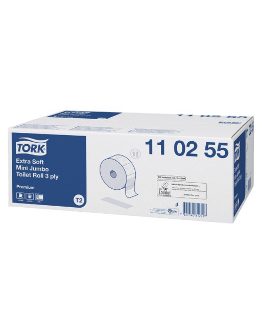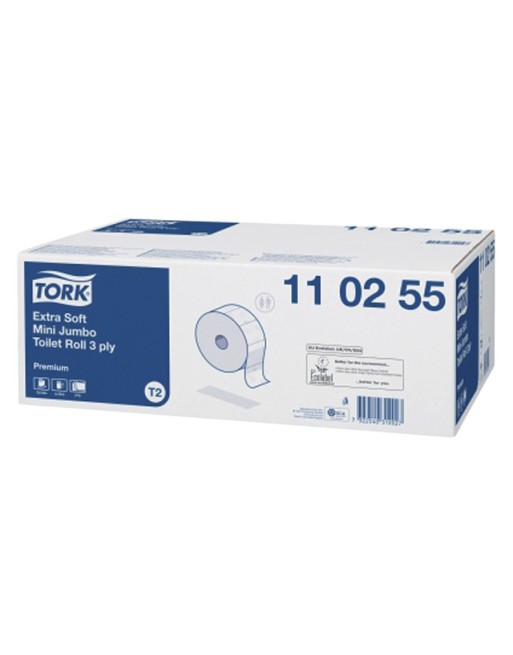 * Het Tork Mini Jumbo-systeem is efficiënt en kostenbesparend en biedt tegelijkertijd meer toiletpapier dan de standaardrollen. * Het premium toiletpapier bestaat uit 3 lagen en biedt een superieur gevoel en stijl in combinatie met prestaties. * Het is geschikt voor locaties met een middelmatig tot groot aantal bezoekers. *Luxueus, extra zacht 3-laags tissue met goede helderheid die een blijvende indruk maakt. *Met een mooie lila bladopdruk die uw sanitaire ruimte sfeer geeft. * Toiletpapier voor Tork T2-Jumbo mini dispenser. * Grote rollen toiletpapier voor ruimtes die om een hoge capaciteit vragen. * Voorzien van Europees milieukeurmerk. * Rollengte 120m. * Rolbreedte 9,7cm. * Roldiameter 18,7cm. * Aantal vellen 600. 1 doos x 12 rol