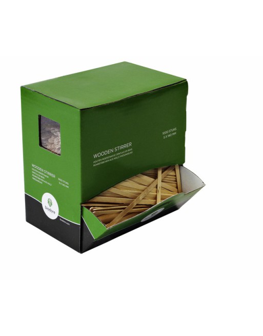 * Kies voor een natuurlijke presentatie met deze houten roerstaafjes in een handige dispenserdoos. * Melk of suiker bij de koffie of thee? Met deze naturel roerstaafjes geef je je drankjes een natuurlijke presentatie en meng je de inhoud heel gemakkelijk. * De roerstaafjes zijn gemaakt van duurzaam, 100% FSC-gecertificeerd hout dat de natuurlijke oorsprong van je verse producten benadrukt. * Met Biodore in huis speel je effectief en op unieke wijze in op de groeiende vraag naar natuurlijke producten die van eten en drinken een ware beleving maken.