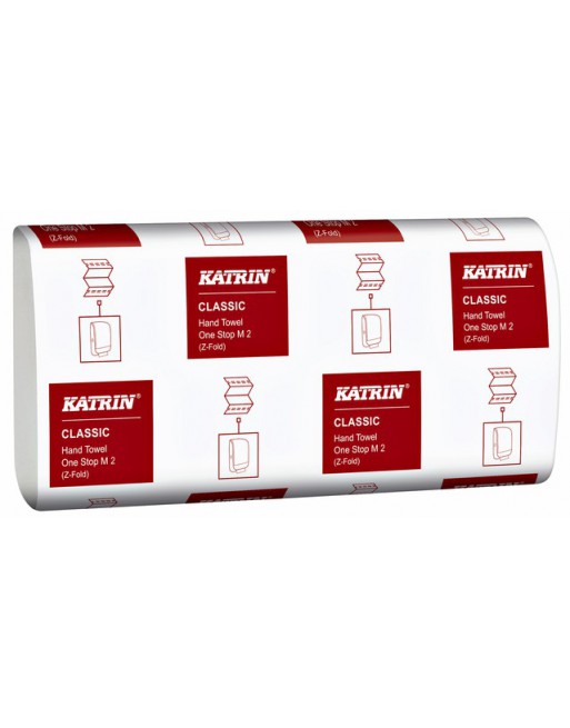 * Deze verpakking Classic M2 One-Stop vouwhanddoekjes van Katrin is ideaal bij laag tot middelhoog verbruik. * De One-stop Interfold is een handige oplossing voor de afgifte van gestapelde papieren handdoeken in de werkomgeving. * De papieren handdoeken hebben een hoog absorptievermogen, zijn zacht en mild voor de huid en voordelig in gebruik. * 2-laags papier. * Afmetingen 235x255mm. * 21 pakken van 144 stuks. * Voorzien van EU milieukeur én Nordic Swan.