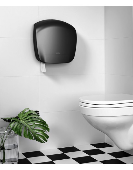 * Katrin Inclusieve Gigant Toiletpapier S Dispenser in zwart. * Dispenser voor grote Gigant toiletrollen voor hoogfrequent gebruik. * De hele papierrol kan economisch worden gebruikt met de geïntegreerde houder voor de stubrol. * Eenvoudig papier afscheuren naar alle kanten en alle randen. * Geen zoeken in de dispenseropening naar het losse uiteinde van de papierrol. * Katrin Gigant S-dispensers zijn geschikt voor Gigant-rollen in S-formaat. * Afmetingen dispenser 245x239x151mm.
