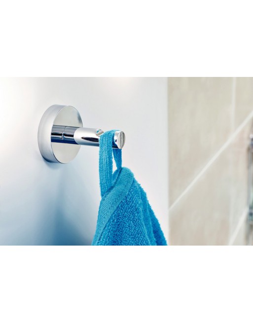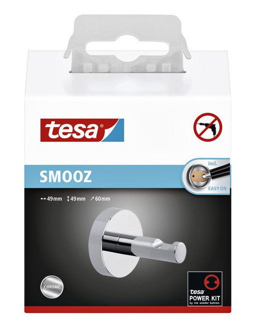 * De zelfklevende tesa Smooz badjashaak heeft een eenvoudig, rond ontwerp en kan gemakkelijk aan de muur worden gemonteerd, zonder boren. * Muren en tegels blijven onbeschadigd. Geen lijmresten bij het verwijderen. * Badjashaak, met gepatenteerde tesaPower.Kit technologie, de alles-in-één zelfklevende montage-oplossing. * Hoogglans verchroomd metaal, afgerond ontwerp, ronde muurplaat, cilindrisch lichaam. * Betrouwbare en eenvoudige bevestiging, waterproof, gegarandeerd roestvrij. * Niet geschikt voor behangen stucwerk. * Verwijderbaar zonder lijmresten. * Afmetingen product 49x49x60mm.