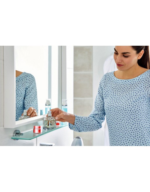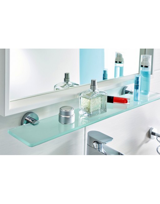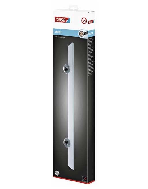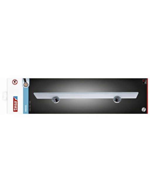 * Het TesaSmooz glazen schap is gemaakt van gesatineerd glas en glanzende verchroomde wandplaten en is een elegante aankleding van de badkamer. * Op het brede rechthoekige schap kunnen toiletartikelen veilig worden bewaard. * De randen en hoeken zijn afgerond om je handen te beschermen. * Wordt gemonteerd met een zelfklevende oplossing die 12 uur nodig heeft om uit te harden. * Boren is niet nodig, zodat er geen schade aan de oppervlakken ontstaat. Het schap verwijderen is gemakkelijk en kan worden gedaan zonder lijmresten. * Hoogglans verchroomd metaal, afgerond ontwerp, ronde muurplaat, gesatineerd glas. * Niet geschikt voor behang en stucwerk. * Afmetingen product 50x600x120mm.