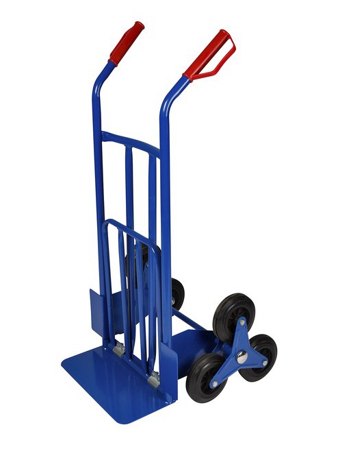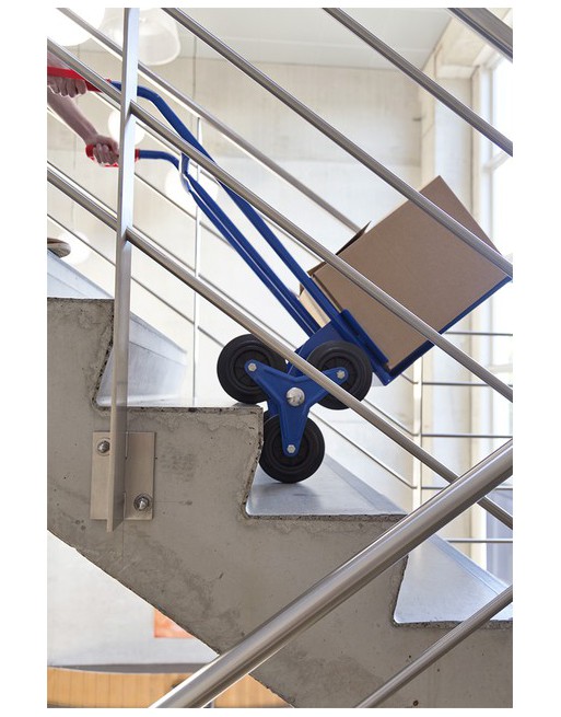 * Stevige steekwagen voor het gebruik op trappen. * Maximale belasting 150kg. * Veiligheidsfactor 1/2. * Nuttige last 75kg. * Frame van staal. * Rubberen wielen met een Ø152mm. * Afmetingen110 x57x56cm. * Afmetingenplatform 1 40x20cm,platform 2 32x50cm.