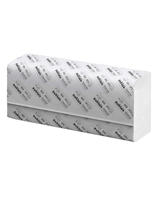 * PT2 handdoeken. * Gevouwen papieren Handdoekken in Prestige kwaliteit. * Helder wit cellulose papier. * 2-laags. * W-Vouw. * 20,6x32cm. * 25 pakjes van 120 stuks. * Satino navullingen. * Met EU ecolabel. ën FSC certificering.