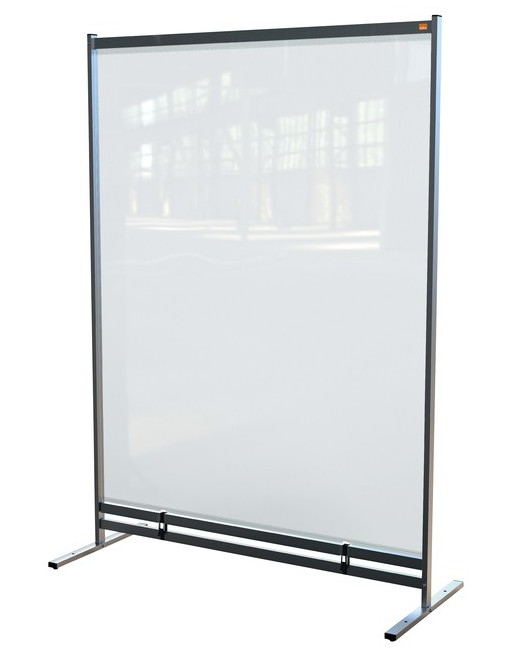 * Het Nobo doorzichtige PVC vloerscheidingspaneel biedt een eenvoudige maar effectieve oplossing voor de sociale afstand die we moeten aanhouden, terwijl het ook duidelijke en veilige communicatie mogelijk maakt. * Het scheidingspaneel voor op de vloer kan zowel binnen als buiten worden gebruikt met de optie om het PVC scherm op te rollen voor eenvoudige opslag. * Gebruik indien nodig extra gewichten voor meer stabiliteit (product 1386183). * Dit op de vloer staande scheidingspaneel is 2m hoog en biedt een hoge mate van bescherming bij het verdelen van ruimtes en looproutes, voor zowel zittende als staande personen. * Het PVC-oppervlak van 500 micron kan gemakkelijk worden schoongeveegd en het transparante ontwerp zorgt ervoor dat natuurlijk licht niet wordt beperkt of verminderd. * Beschikt over een weerbestendige, gepoedercoate laag die geschikt is voor zowel binnen als buiten. * Formaat: 1480x2060mm - schermhoogte is 2000mm; biedt een hoog beschermingsniveau in elke omgeving. * Afmetingen (mm): B1480xH2060xD610 - wewicht: 10kg. * Stabiel en toch draagbaar. * Geschikt voor veelzijdig gebruik, voor zowel binnen als buiten. * Robuust PVC-scherm van 500 micron met een weerbestendige, gepoedercoate frame. * Het transparante ontwerp zorgt voor duidelijke communicatie terwijl je beschermd blijft. * Snel en eenvoudig te monteren door één persoon. * Reinig met een schone, zachte microvezeldoek met water en zeep.