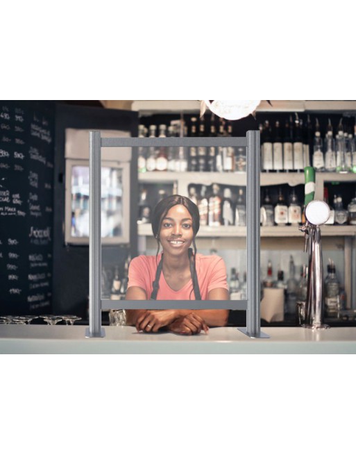 * Hygiënescherm voor sociale afstand tegen luchtverontreinigende stoffen. * Lichtgewicht aluminium frame maar een robuuste en stabiele constructie. * Seperatieplaten en voetjes voor directe montage op het werkblad. * Zeer geschikt voor locaties waar een breed en groot scherm gewenst is. * Gemaakt van stevig acryl wat beschermt tegen breuk. * Eenvoudig en snel te monteren. * Plat verpakt. * Transactieruimte van 120 mm over de gehele breedte. * Afmeting: 850x900mm. * Uit te breiden door middel van apart te verkrijgen schermen in gelijk formaat (artikelnummer 357001).