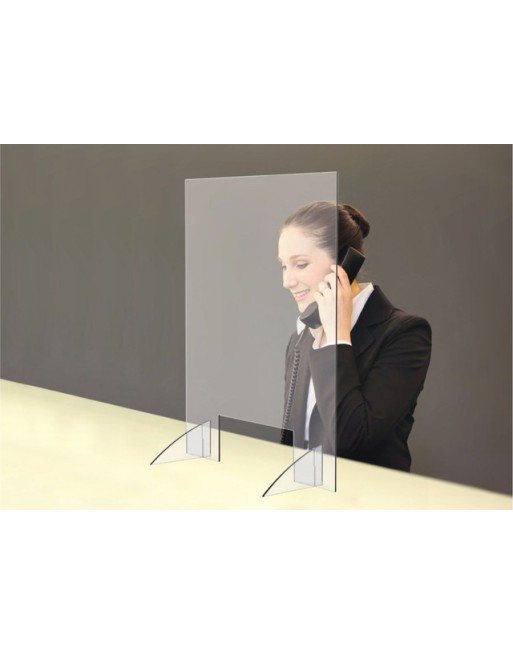 * Hygiënescherm voor sociale afstand ter bescherming van klanten en medewerkers. * Door middel van 2 aparte voeten snel en gemakkelijk te monteren. * Gemaakt van stevig acryl met een dikte van 5mm, dat weerstand biedt tegen breuk. * Voorzien van een handig transactievenster, afmeting 300x150mm. * 10 Graden kijkhoek voor extra stabiliteit. * Formaat: 600x900x300mm.