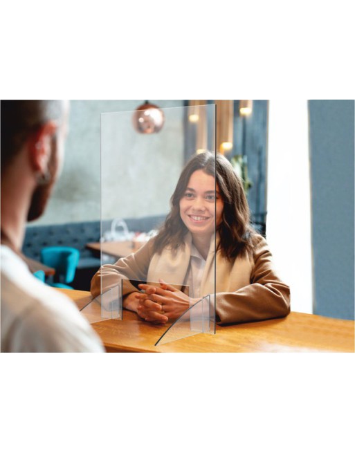 * Hygiënescherm voor sociale afstand ter bescherming van klanten en medewerkers. * Door middel van 2 aparte voeten snel en gemakkelijk te monteren. * Gemaakt van stevig acryl met een dikte van 5mm, dat weerstand biedt tegen breuk. * Voorzien van een handig transactievenster, afmeting 300x150mm. * 10 Graden kijkhoek voor extra stabiliteit. * Formaat: 500x750x300mm.