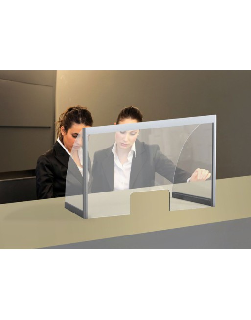 * Hygiënescherm voor sociale afstand tegen luchtverontreinigende stoffen. * Voorkomt directe besmetting. * Gemaakt van stevig acryl met een dikte van 5mm, dat weerstand biedt tegen breuk en verbrijzeling. * Lichtgewicht aluminium frame maar een robuuste en stabiele constructie. * Eenvoudig te monteren. * Voorzien van een handig transactievenster, afmeting 300x120mm. * Formaat: 1000x500x400mm.